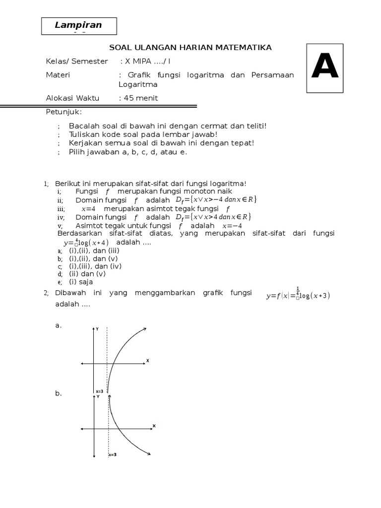 Soal dan jawaban grafik fungsi logaritma. Di tabel tidak ada yang n nya 234. A 1 numerus. Asimtot tegaknya tidak ada sebab untuk x ternyata y.
