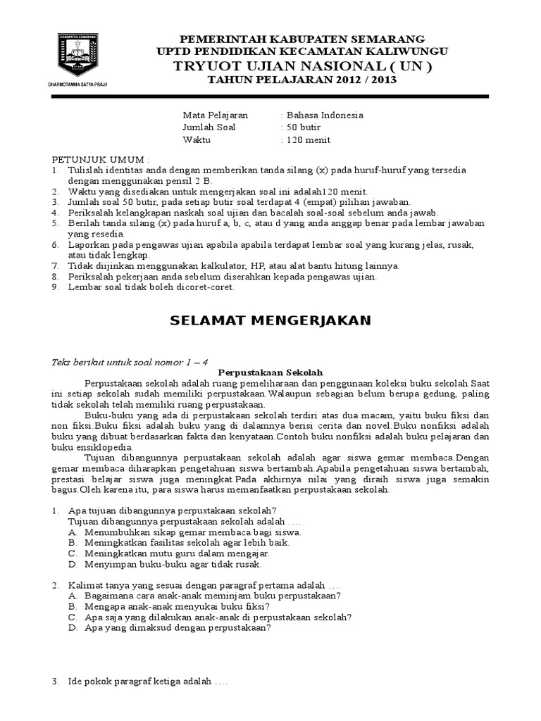 Download Kumpulan Soal USBN Bahasa Indonesia SD/MI ...