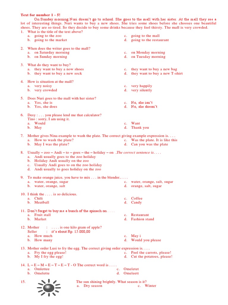 Download Soal UAS / UKK Bahasa Inggris Kelas 2 Semester 2 ...